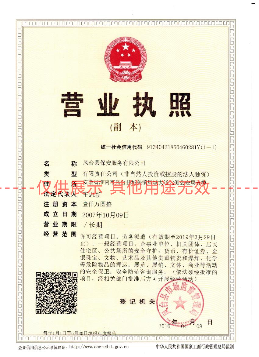 齊備的國(guó)家資質(zhì)認(rèn)證保安服務(wù)許可證
